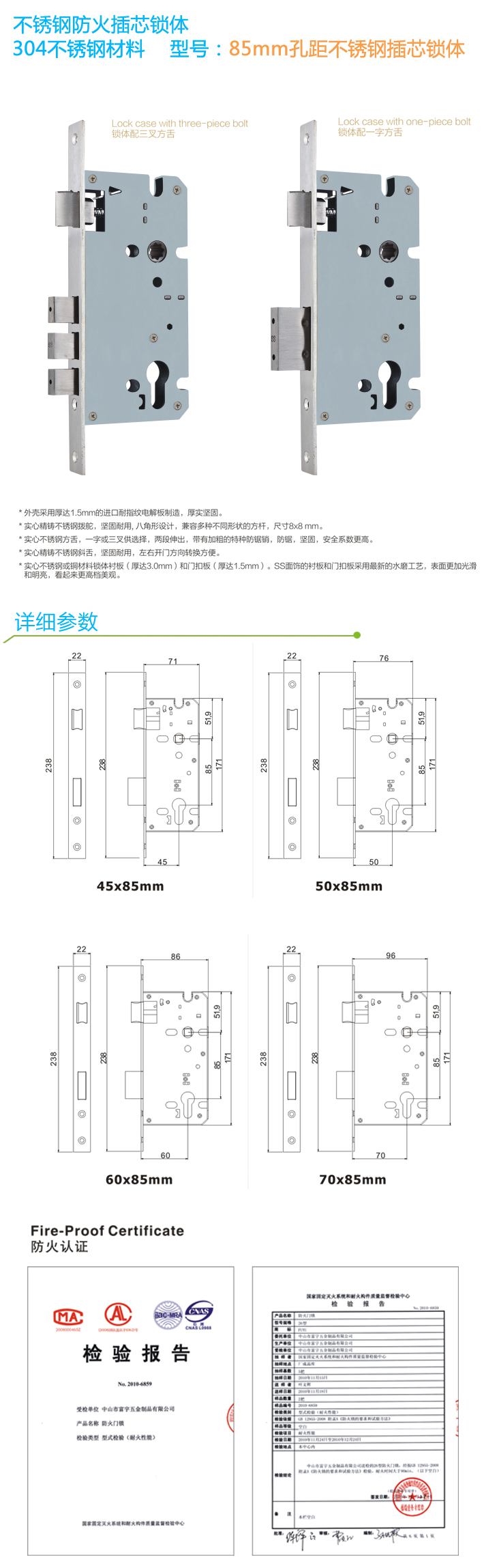 * 表示必填采購:45-70*85mm孔距不鏽鋼插芯鎖體