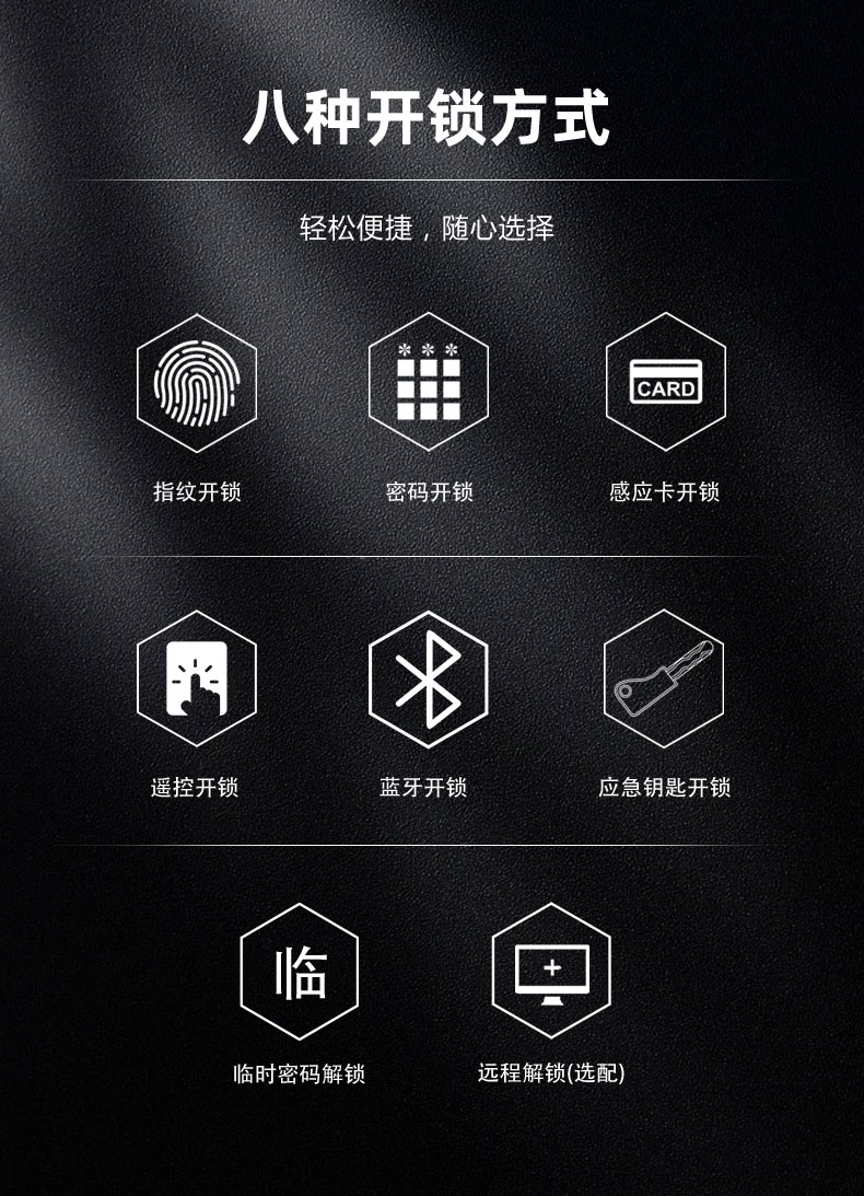 指紋+密碼(mǎ)+卡+鑰匙+塗鴉(yā)藍牙+(遙控選配)
