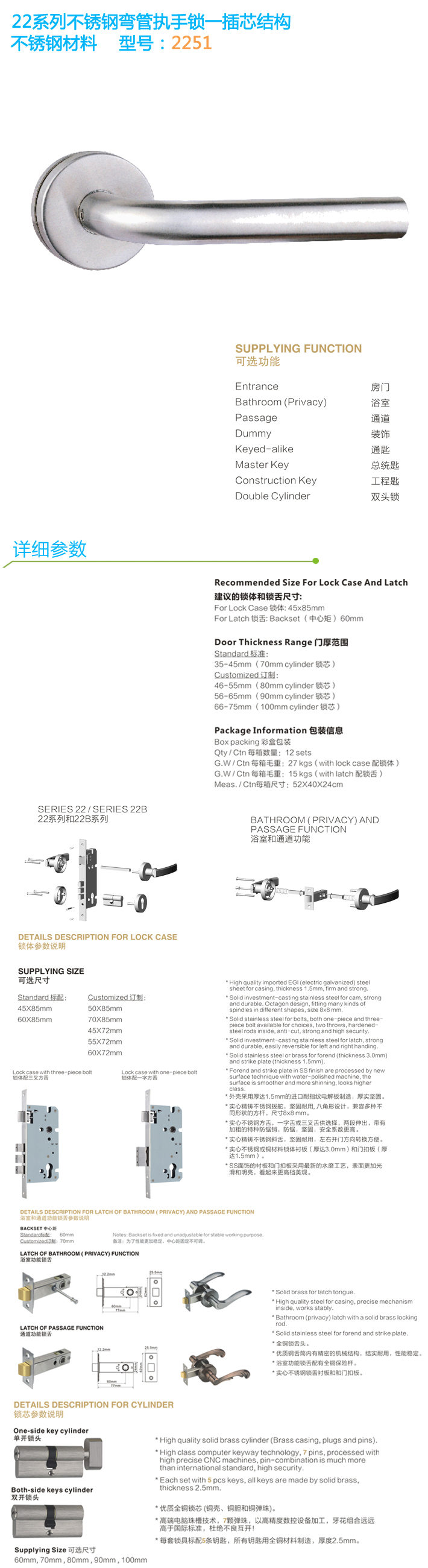 * 表示必填(tián)采購:不鏽鋼彎管執手鎖 22ST51