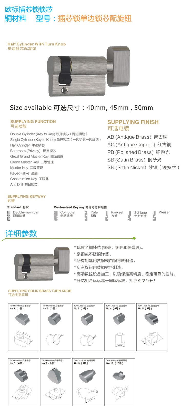 * 表示必填采(cǎi)購:插芯鎖(suǒ)單邊鎖芯配旋鈕