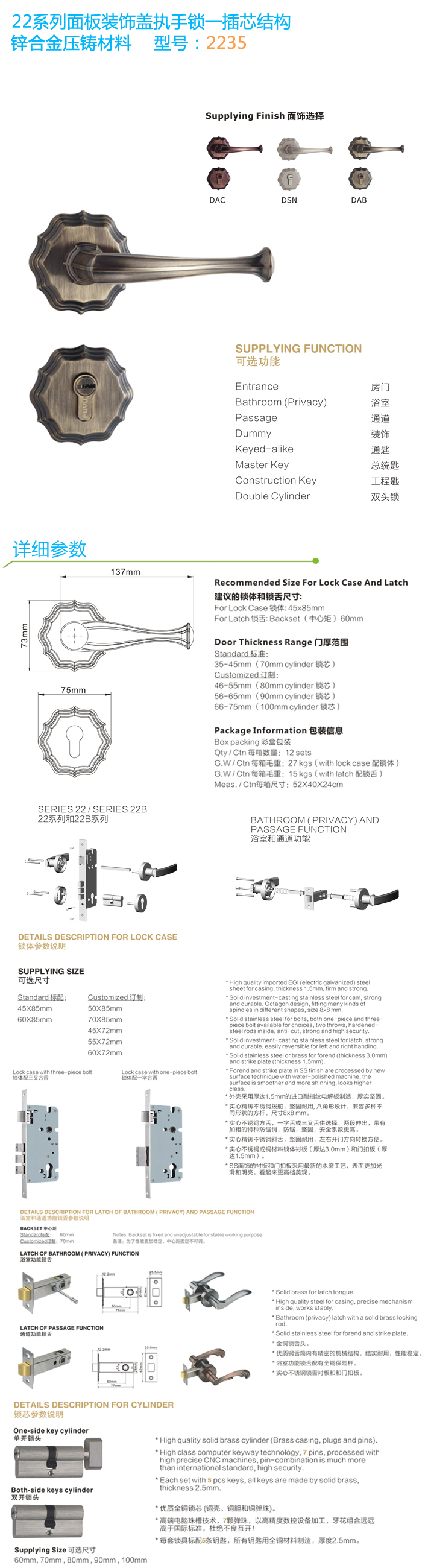 - 分體(tǐ)裝(zhuāng)飾蓋插芯門鎖 2229