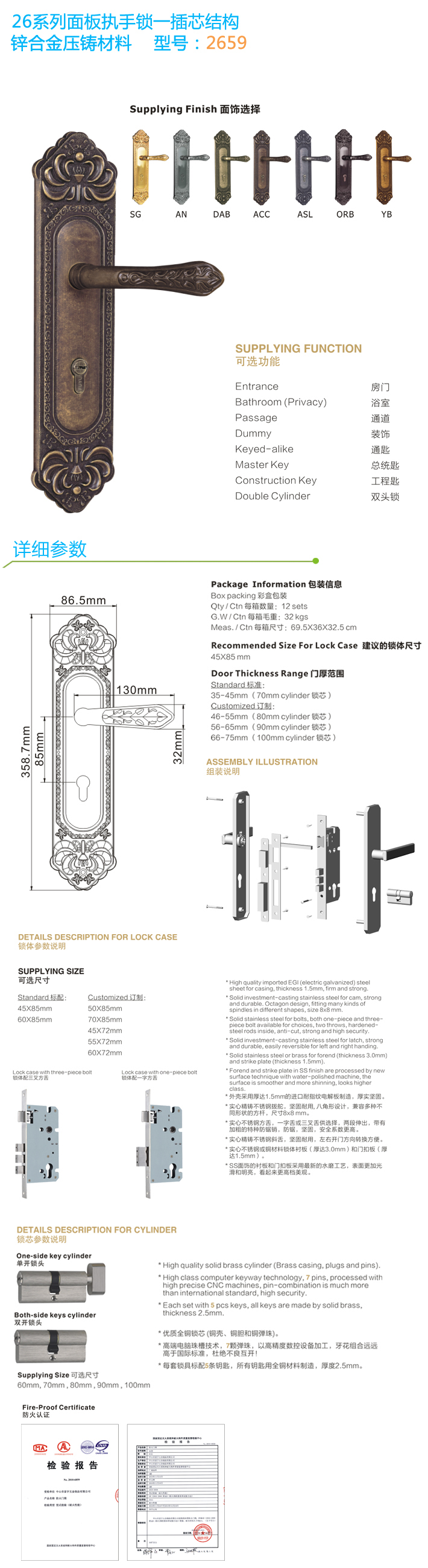 - 古典歐式麵板(bǎn)執(zhí)手鎖(suǒ) 2666