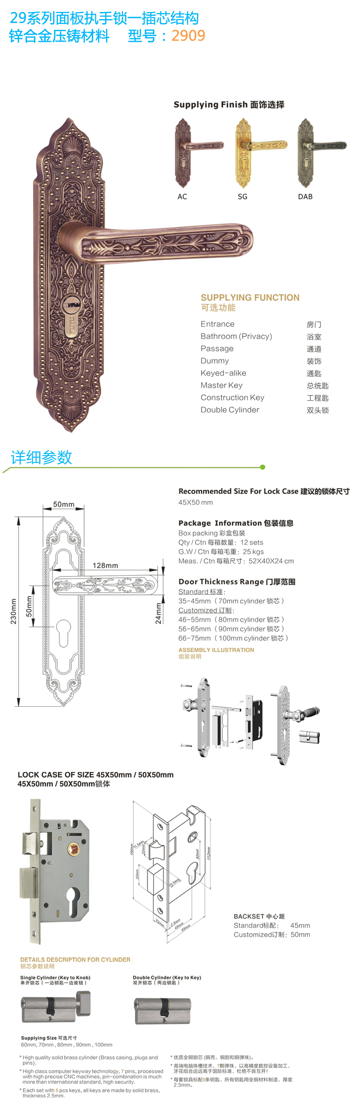 * 表示必填(tián)采購:古典小麵板(bǎn)執(zhí)手鎖 2909