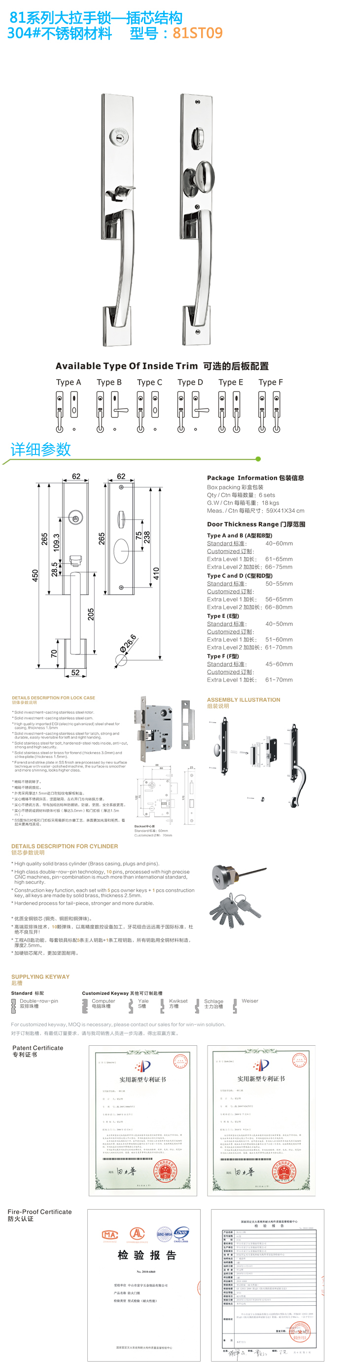 - 歐標不鏽鋼大拉手鎖 81ST02