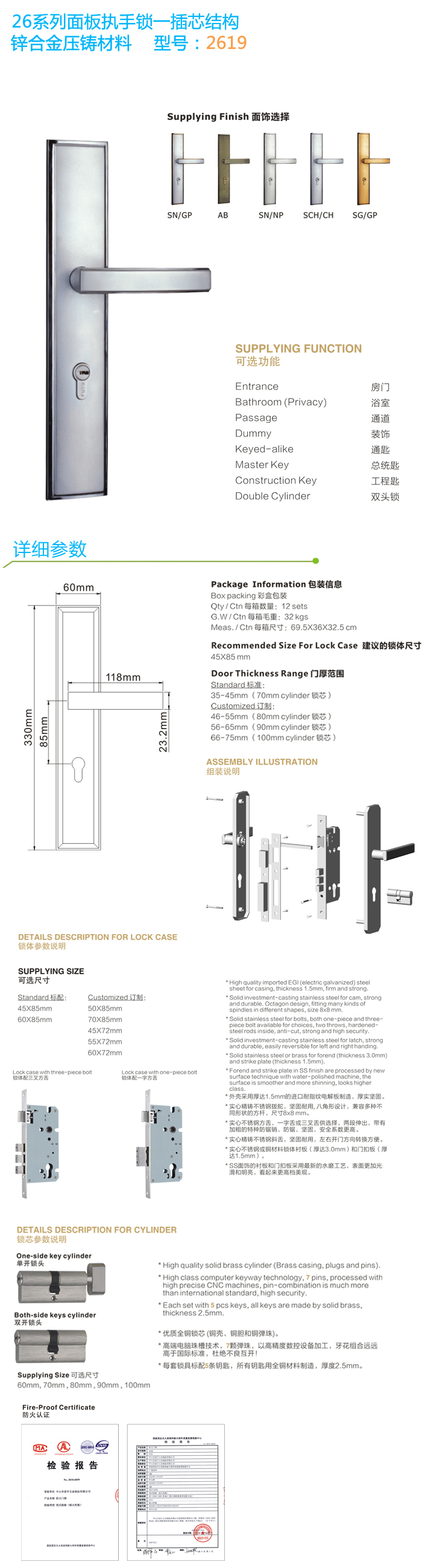 * 優質全銅鎖芯,標配5條全銅(tóng)鑰匙
