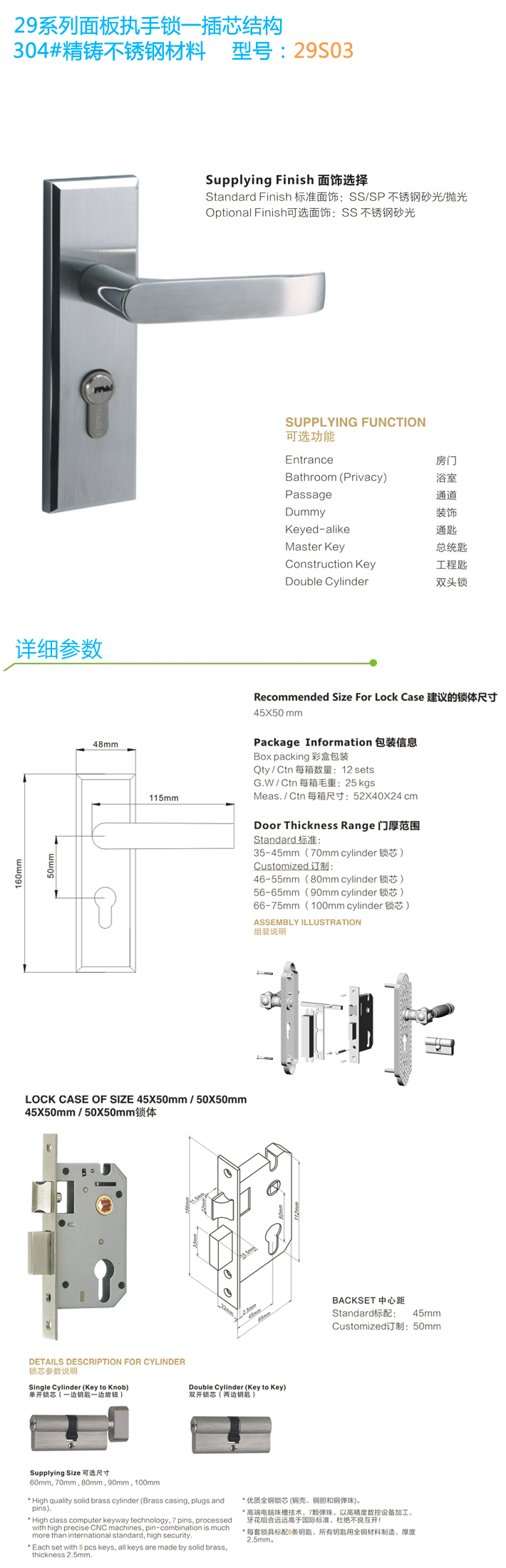 現代小麵板執手不鏽鋼鎖 29S03