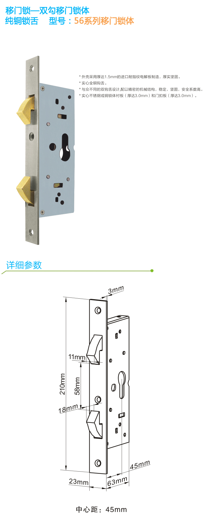 * 表示必填(tián)采購:移門鎖雙鉤豪華鎖體