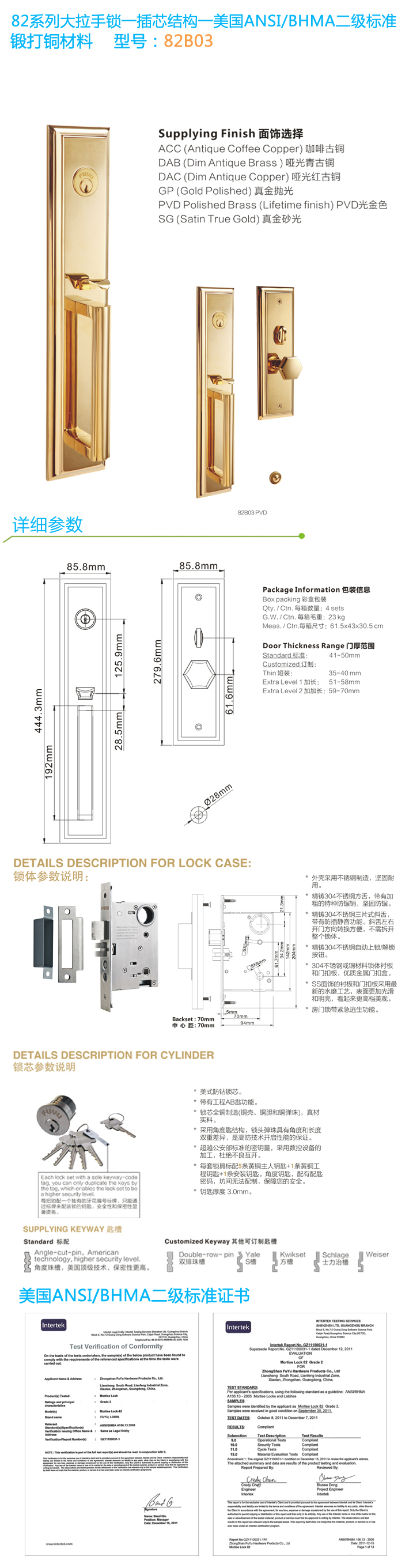 - * 通過美(měi)國ANSI/BHMA GRADE二級認證